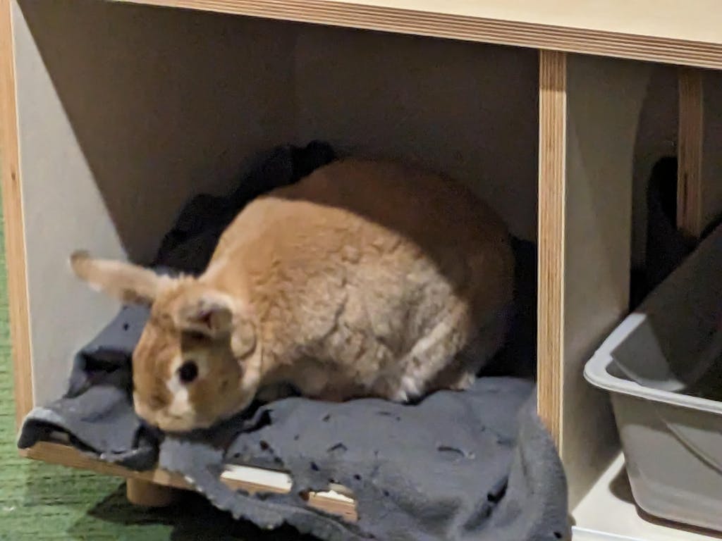 "I put some treats inside the entry room to encourage him to explore and within an hour he was hopping about and loving it. I’m in love with how it looks and that my everything room (I live in 350 square foot 1 bedroom, so the main room is living/kitchen/dining/music room), looks purposeful. The design is so clean and thoughtful, you can tell that [BINK] really put a lot of thought into what would be helpful for bunny parents."